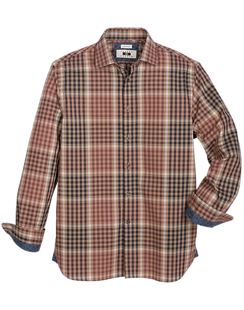 Ruggedly handsome, this sport shirt from Joseph Abboud features a plaid print with contrasting cuffs.