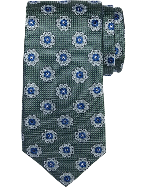 This fine silk tie by Joseph About features a contemporary medallion motif for a traditional touch with a modern update.
