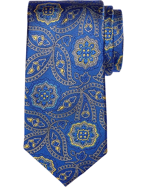 Stylized paisleys and floral medallions in contemporary color combinations mix it up on this fine silk tie from Joseph Abboud.