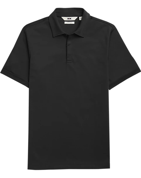 This classic polo by Joseph Abboud features a silky smooth cotton knit fabric and a smooth covered button placket in rich black.
