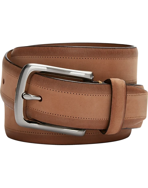 Fine perforation over a tonal panel design defines this Italian-made leather belt from Joseph Abboud.