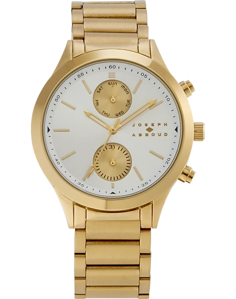 - Gold-tone finish|Stainless steel case back|Two subdials|Analog with second hand|Joseph Abboud|